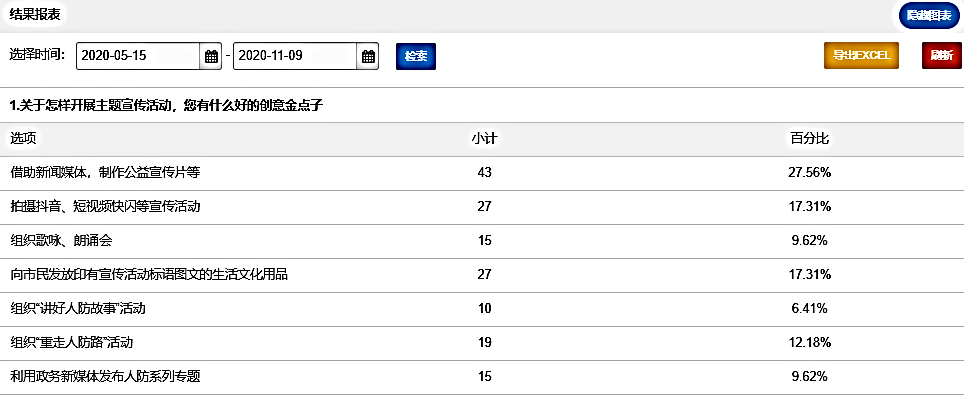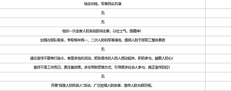 今年5月15日我办就如何开展新中国人民防空创立70周年纪念活动向广大网民发起意见征集。共收到63份有效问卷反馈。现将有关征集情况公布如下: