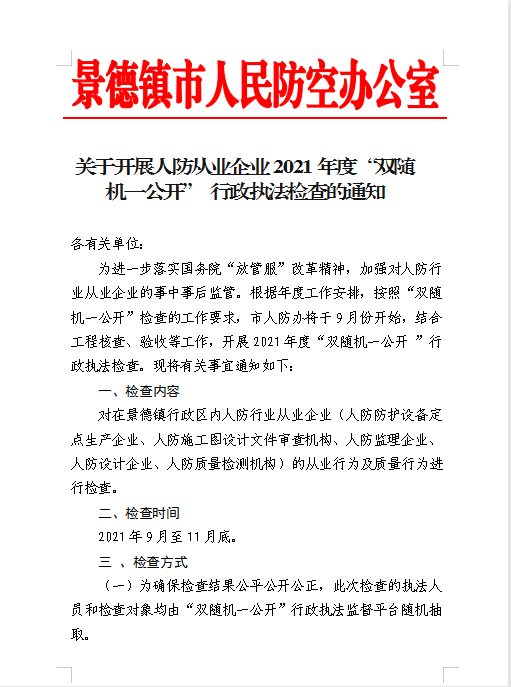 景德镇2021双随机检查通知