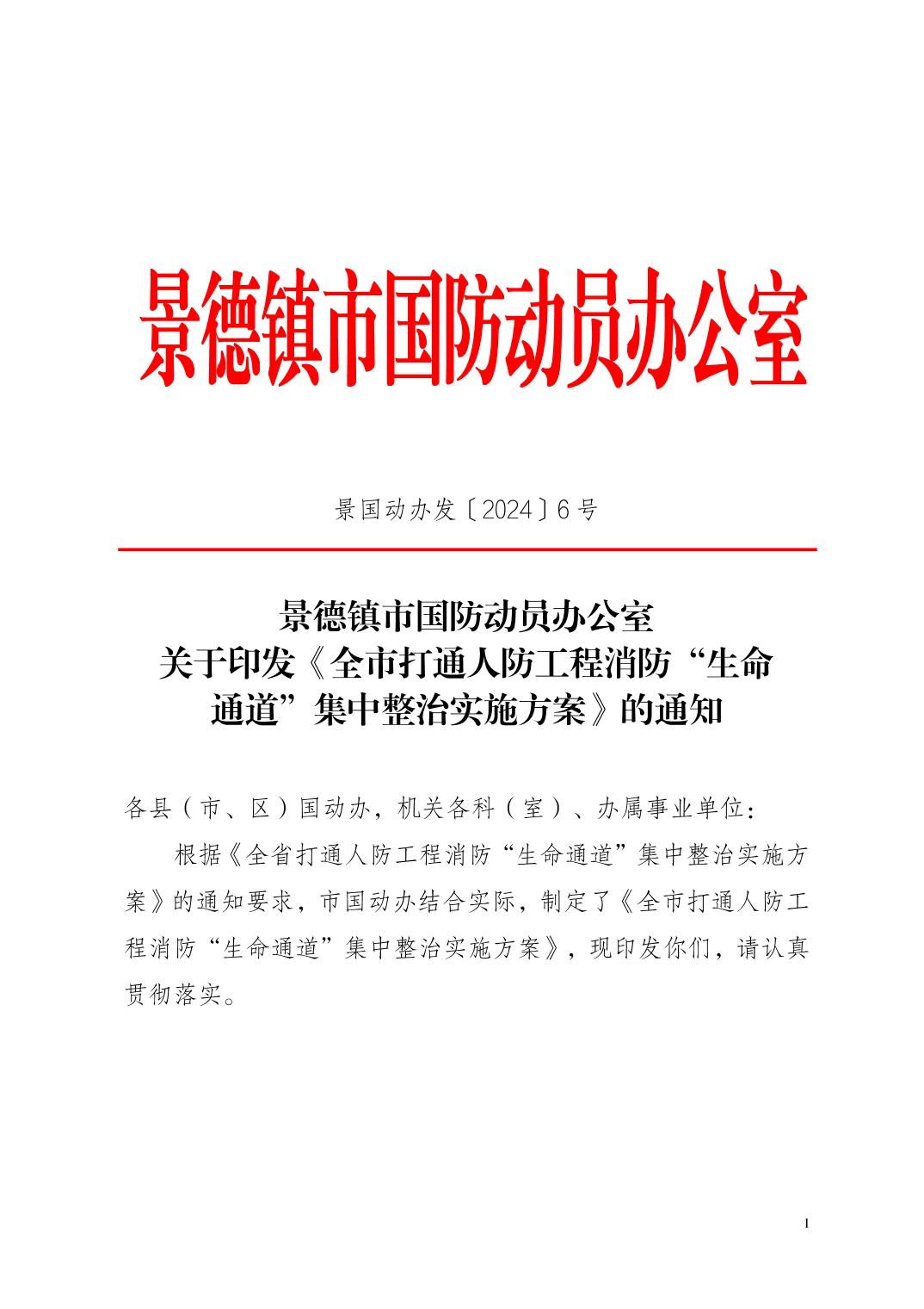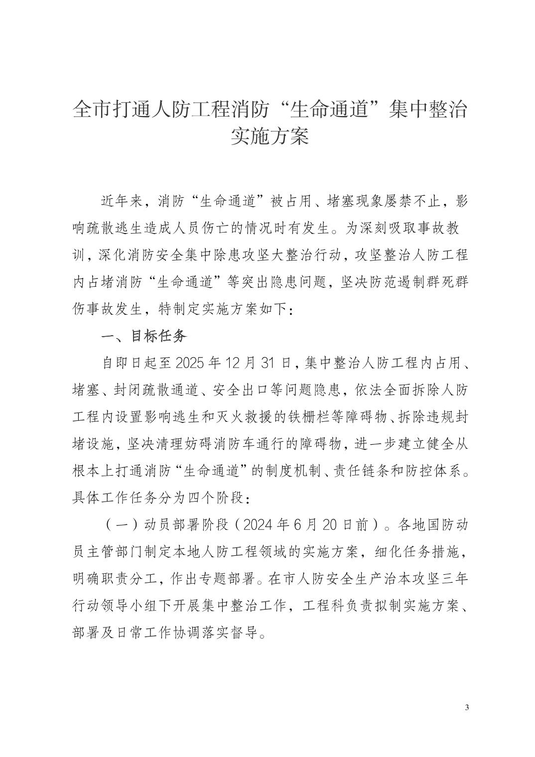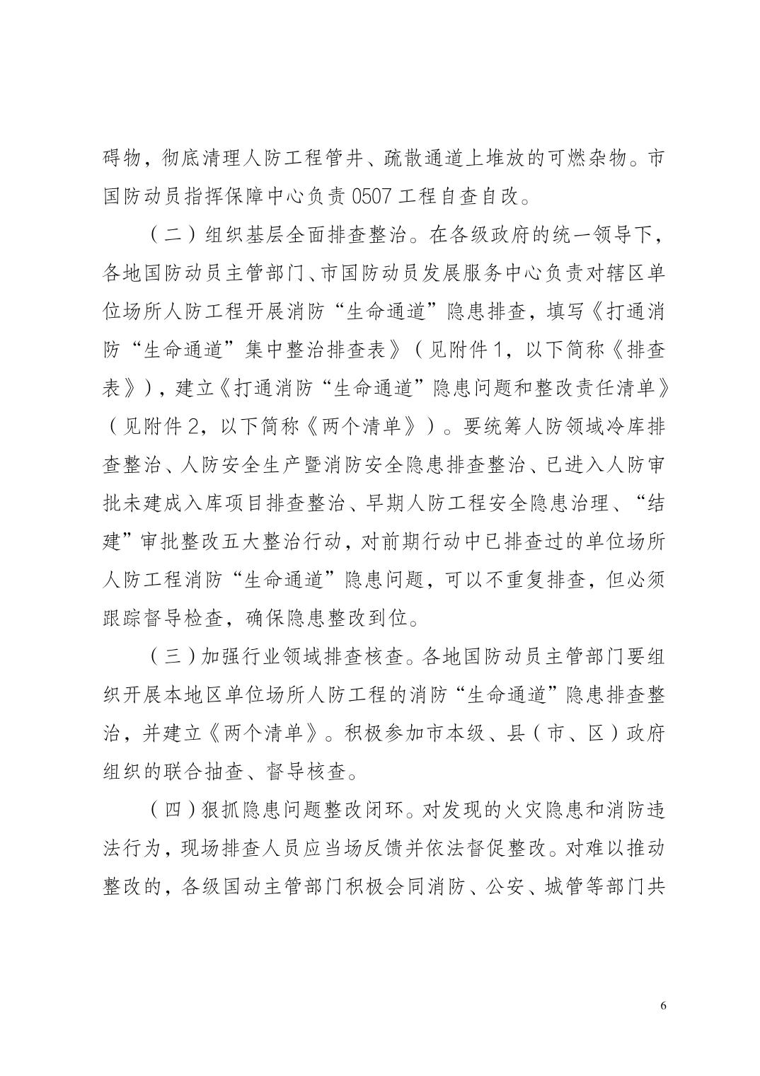 市国动办关于打通人防工程消防“生命通道”集中整治的通知