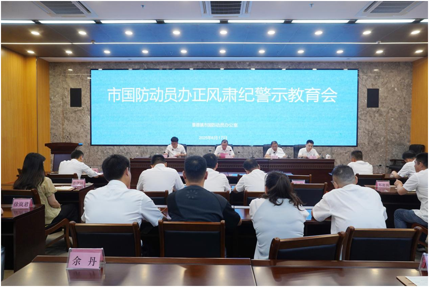 6月17日上午,市国防动员办召开正风肃纪警示教育会,引导全办党员干部知敬畏、存戒惧、明底线,筑牢思想防线、严守纪法底线、强化使命担当,为全市国防动员事业高质量发展提供坚强的组织和作风纪律保障。市国防动员办党组书记、主任彭庆鉴出席会议并讲话。办党组成员、副主任钱江欣、王瀚聆,市纪委市监委驻市委统战部纪检监察组三级调研员胡庆平及全办党员干部参加会议。