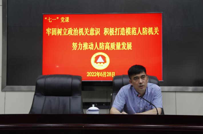 为庆祝中国共产党成立101周年,推动党史学习教育常态化长效化,6月28日,市人防办党组成员、副主任、党总支书记钱江欣以“牢固树立政治机关意识 积极打造模范人防机关 努力推动人防高质量发展”为主题,为全办党员上了一堂生动的党课。钱江欣从充分认清牢固树立政治机关意识的重大意义、深刻把握强化政治机关意识的深刻内涵、进一步强化政治机关意识推动人防高质量发展三个方面与大家进行了深入浅出的学习交流。